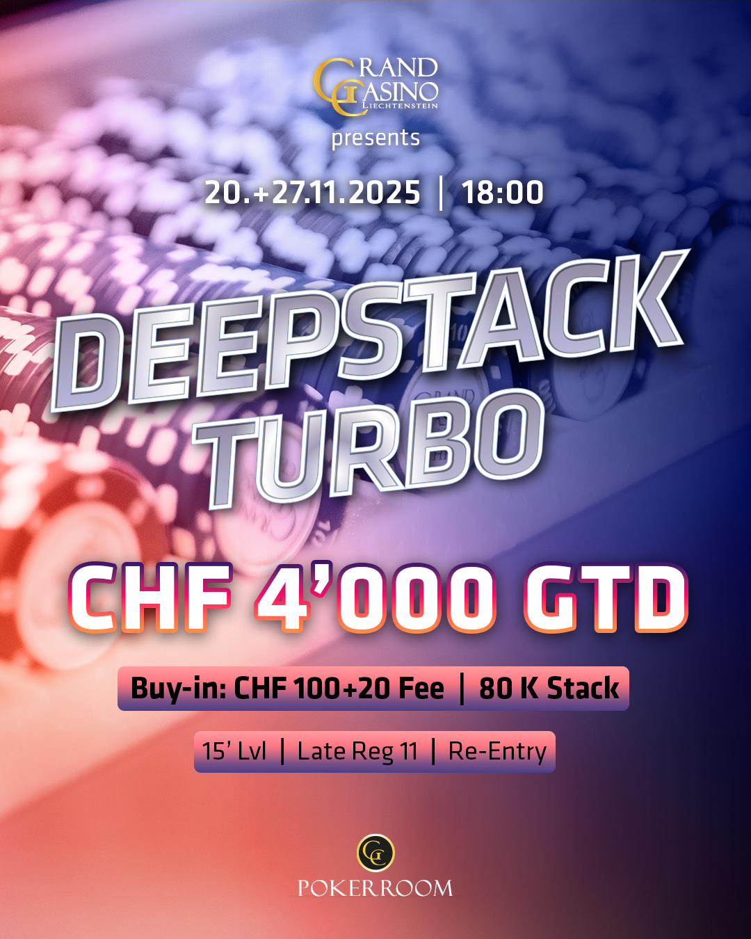 | 18:00 | Deepstack | 200CHF (180+20) | 10.000CHF | 25 | 0 | Scheduled | ![]() |