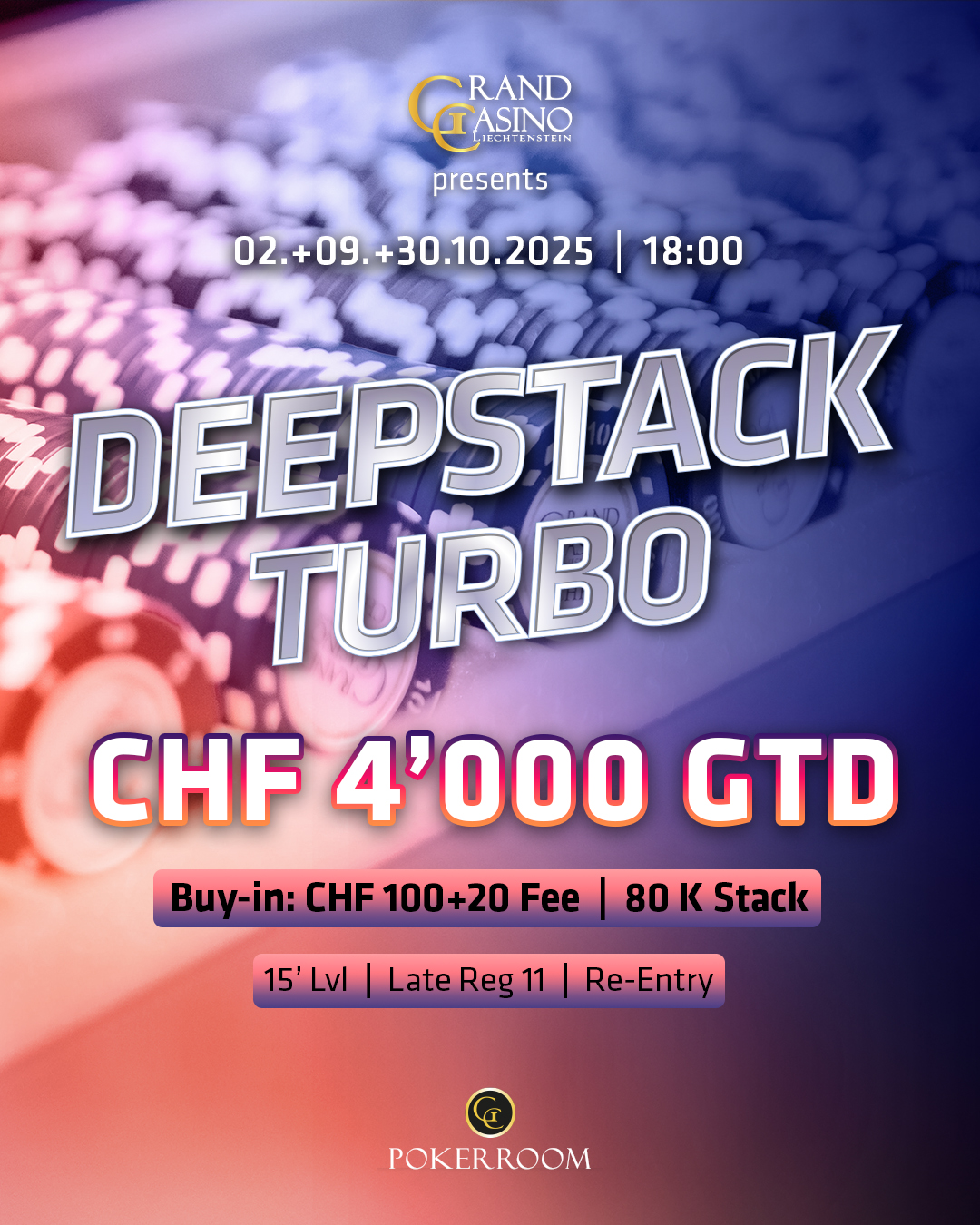 18:00 | Deepstack Turbo | 120CHF (100+20) | 4.000CHF | 15 | 0 | Scheduled | ![]() |