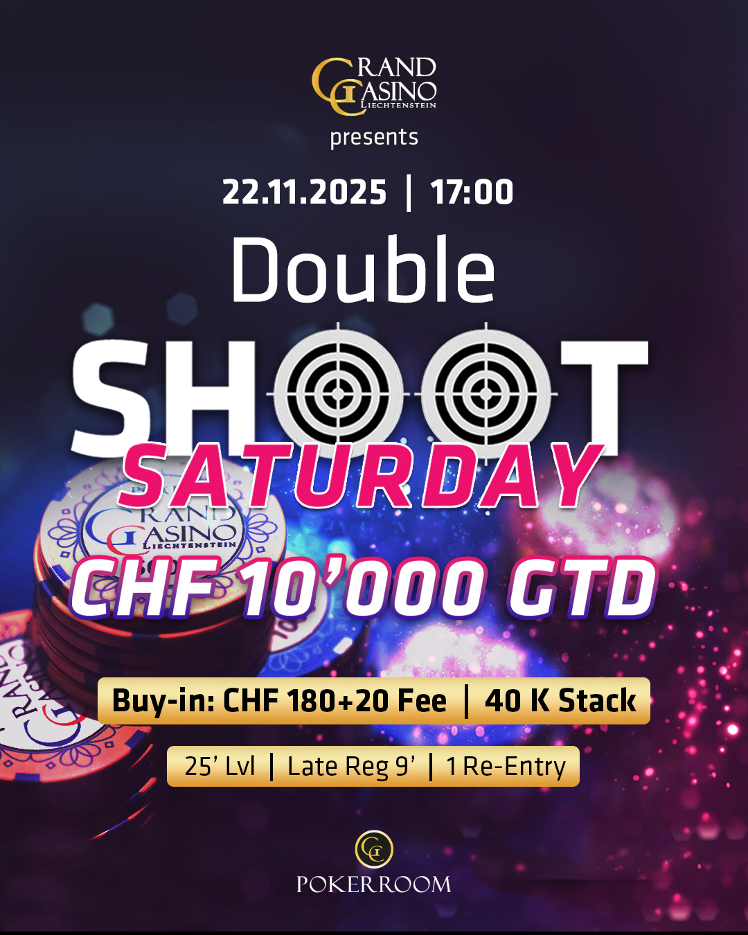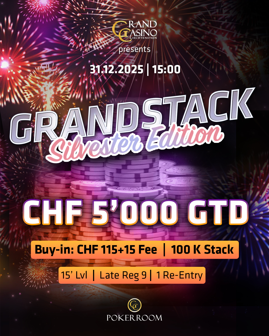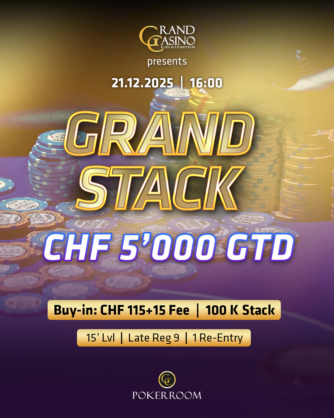 | 17:00 | Grand Stack | 130CHF (115+15) | 5.000CHF | 15 | 0 | Scheduled | ![]() |