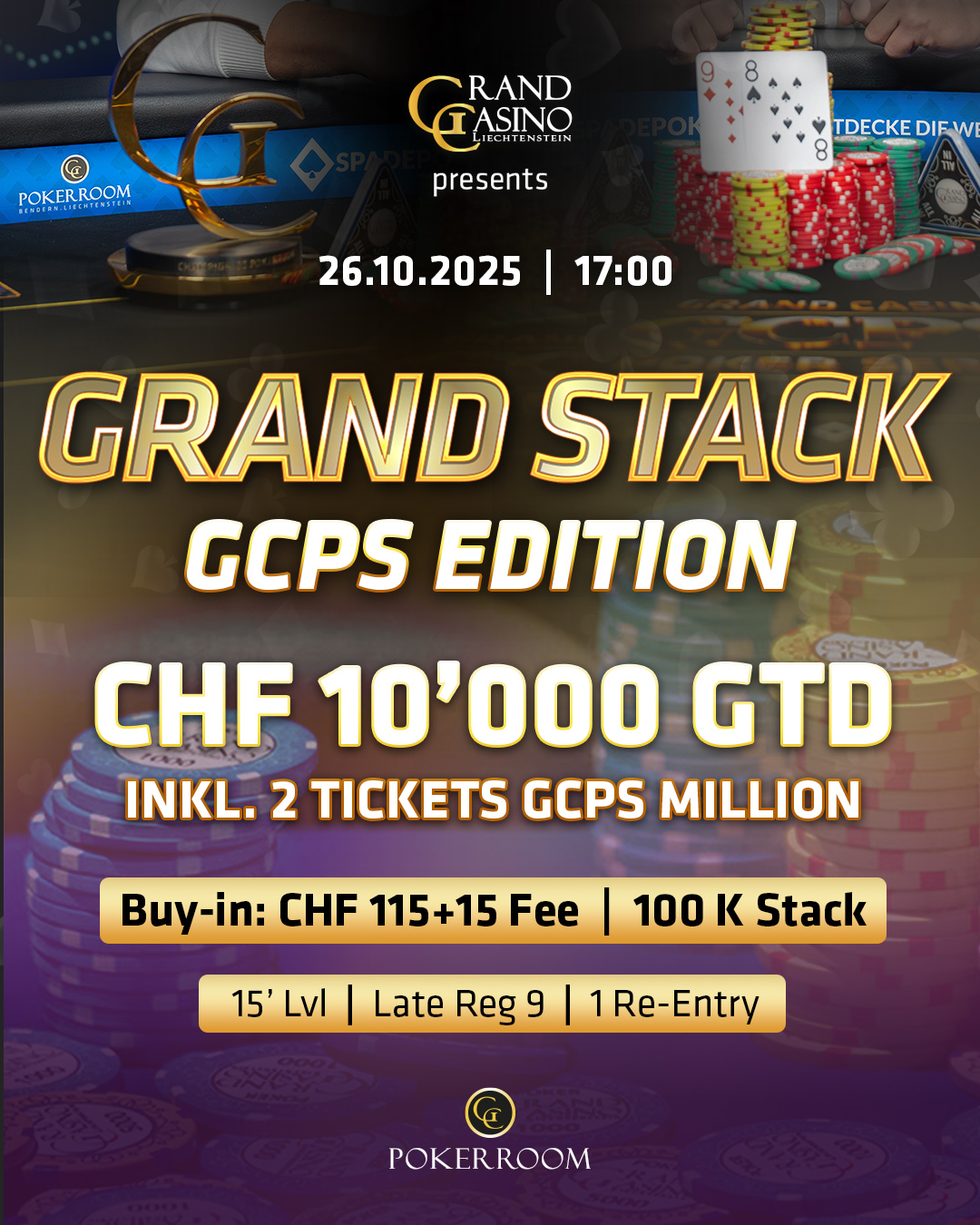 17:00 | Grand Stack - GCPS Edition | 130CHF (115+15) | 10.000CHF | 15 | 0 | Scheduled | ![]() |
