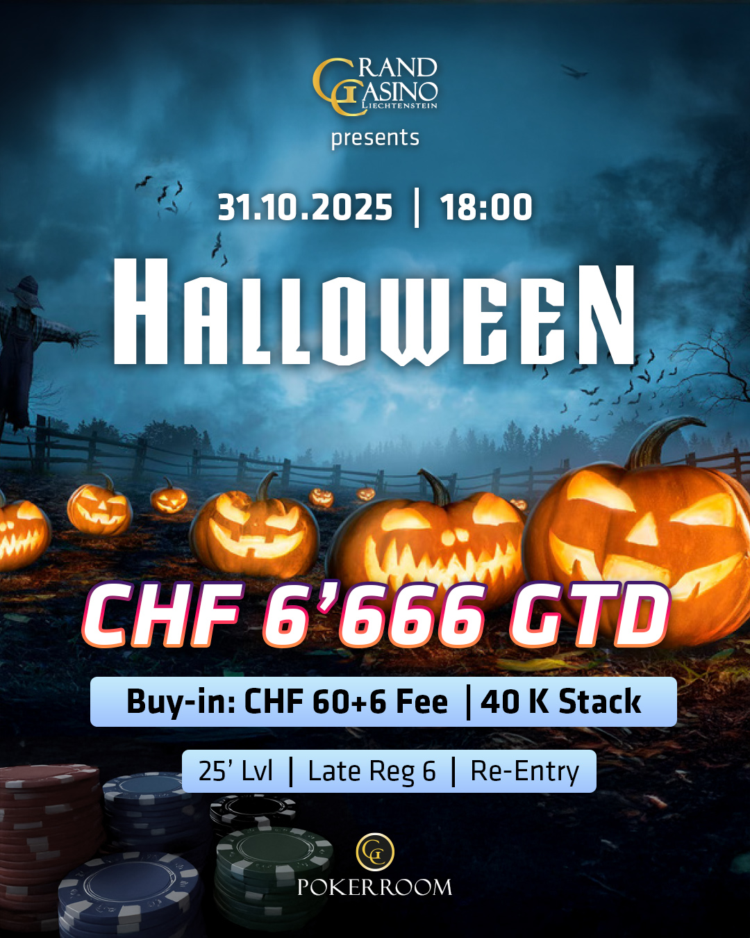 18:00 | 🎃Halloween 🎃 | 66CHF (60+6) | 6.666CHF | 25 | 0 | Scheduled | ![]() |