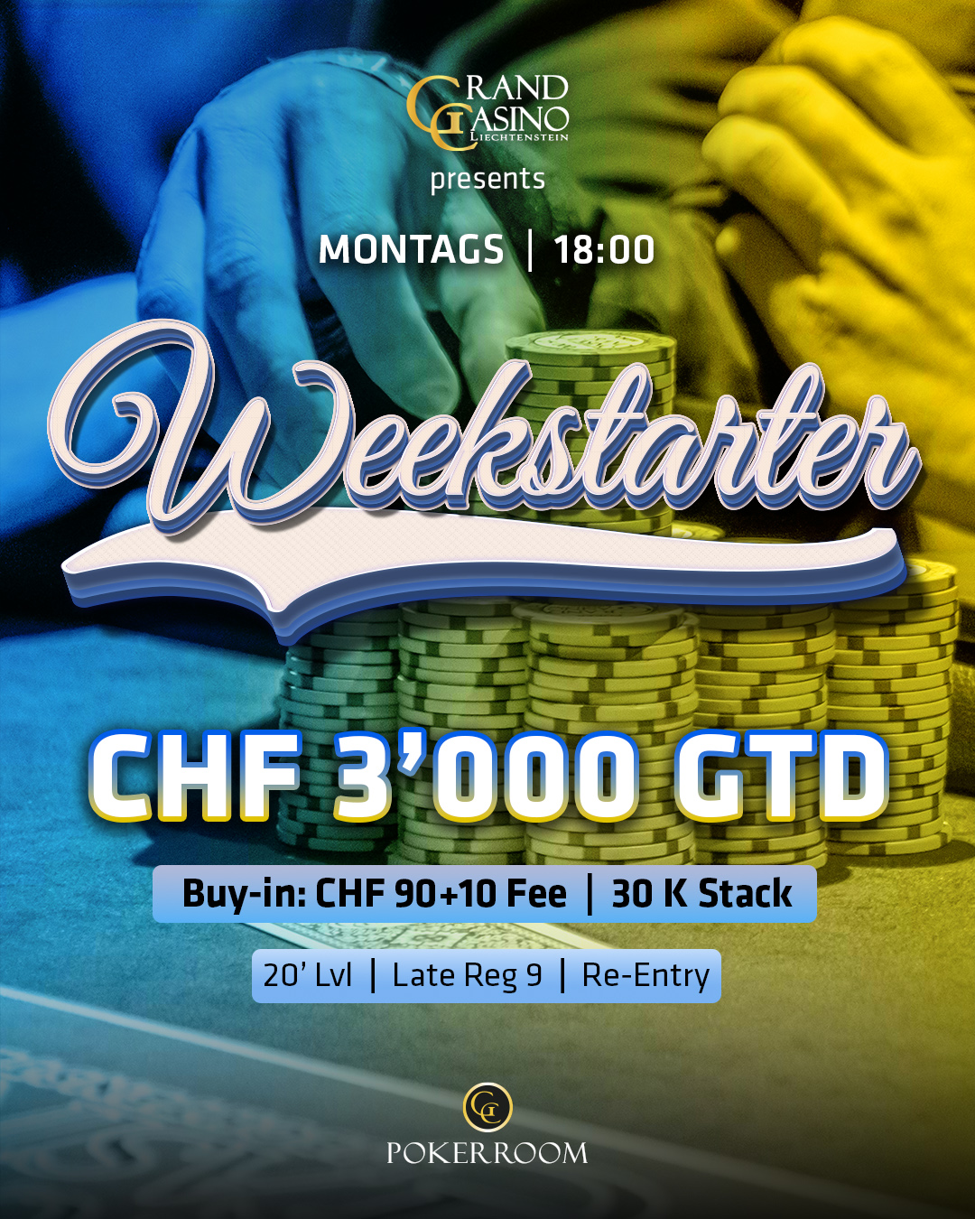 18:00 | Weekstarter | 100CHF (90+10) | 3.000CHF | 20 | 0 | Scheduled | ![]() |
