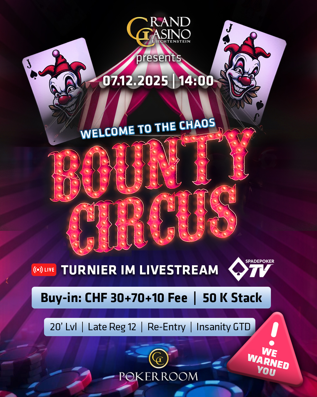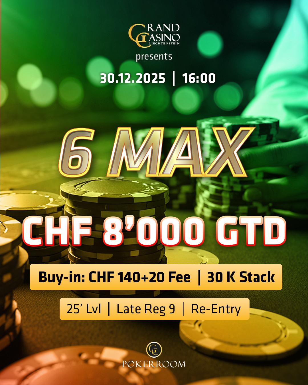 CHF 100'000 GTD / CHF 15'000 GTD höchste Mystery Bounty/ 12% ITM