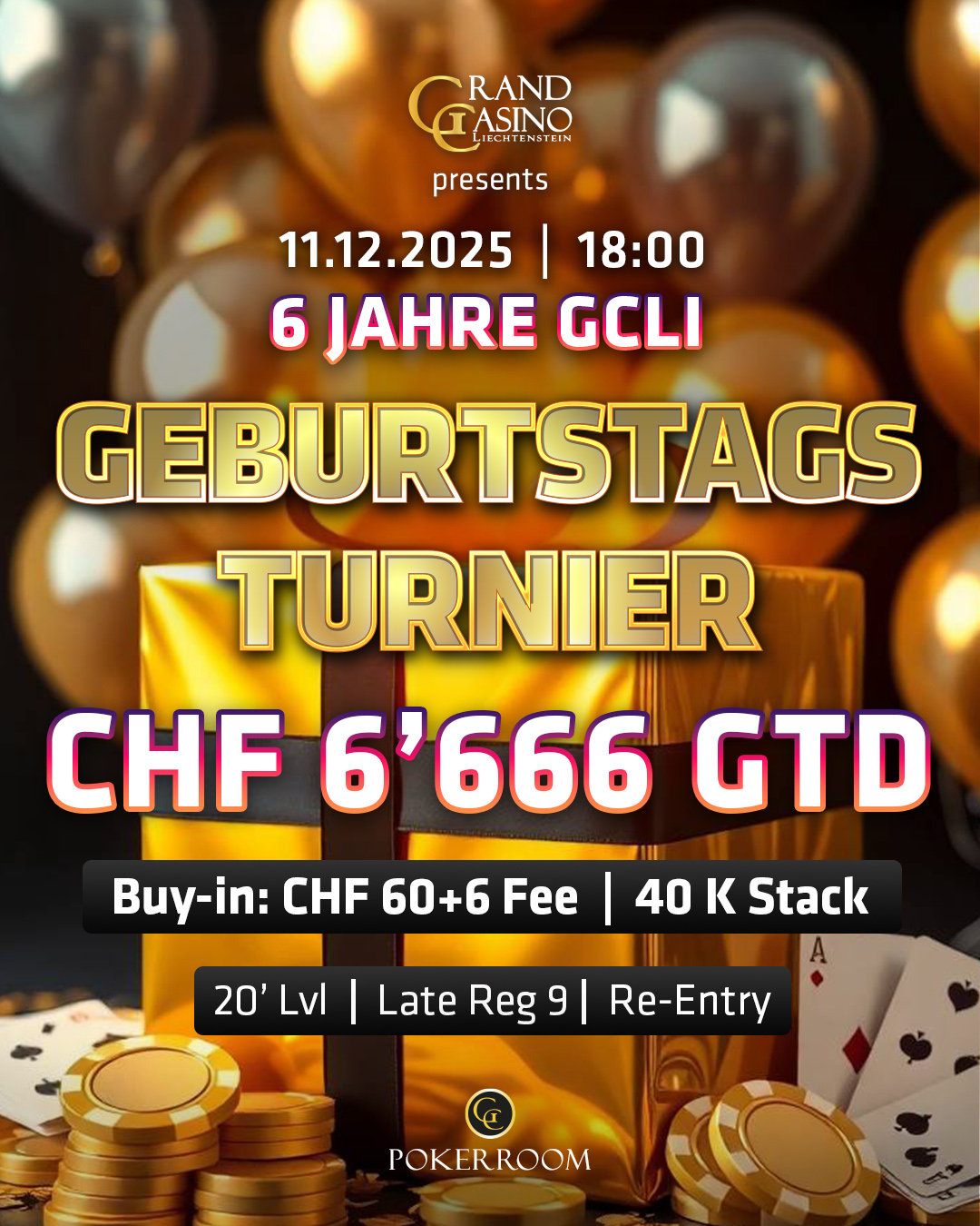 | 16:00 | Grand Stack | 140CHF (120+20) | 10.000CHF | 15 | 0 | Scheduled | ![]() |