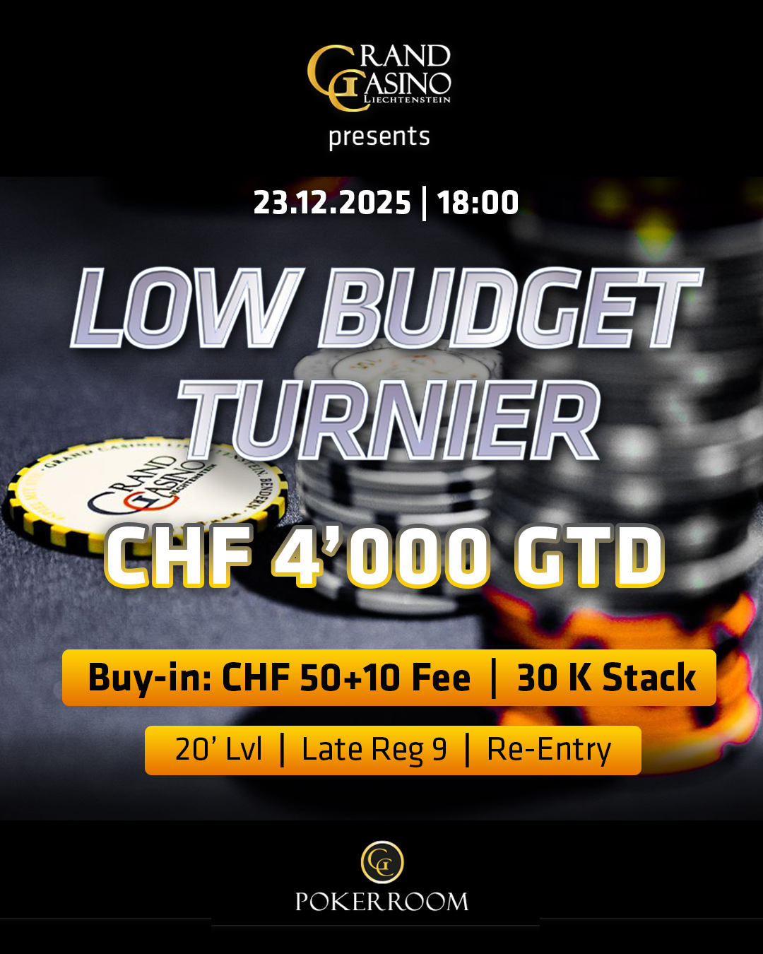 | 18:00 | Low Budget | 60CHF (50+10) | 4.000CHF | 20 | 0 | Scheduled | ![]() |