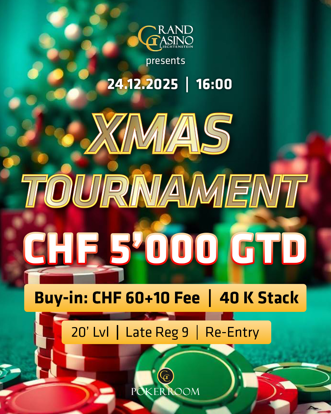 | 16:00 | Xmas Tournament | 90CHF (80+10) | 5.000CHF | 20 | 0 | Scheduled | ![]() |